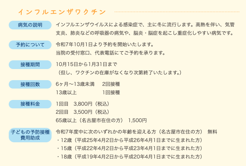2025年のインフルエンザ予防接種日程のお知らせです。